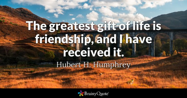 I have received the greatest gift. At least the greatest gift according the Hubert H. Humphrey. I believe that friends presence comes and goes in your life but that friendship stays forever. I have friends that I don't see for several years and we pick up right where we left off. I have friends that I haven't seen or talked to for a long time and I really, really miss them.